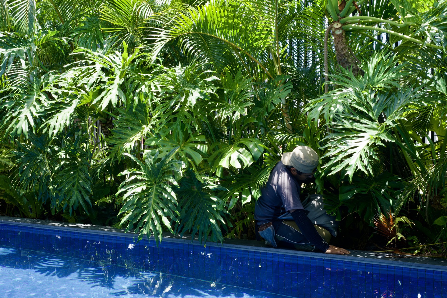 プールへ注ぐ強い日差しもほどよく和らぎ、風の通りも心地よい、