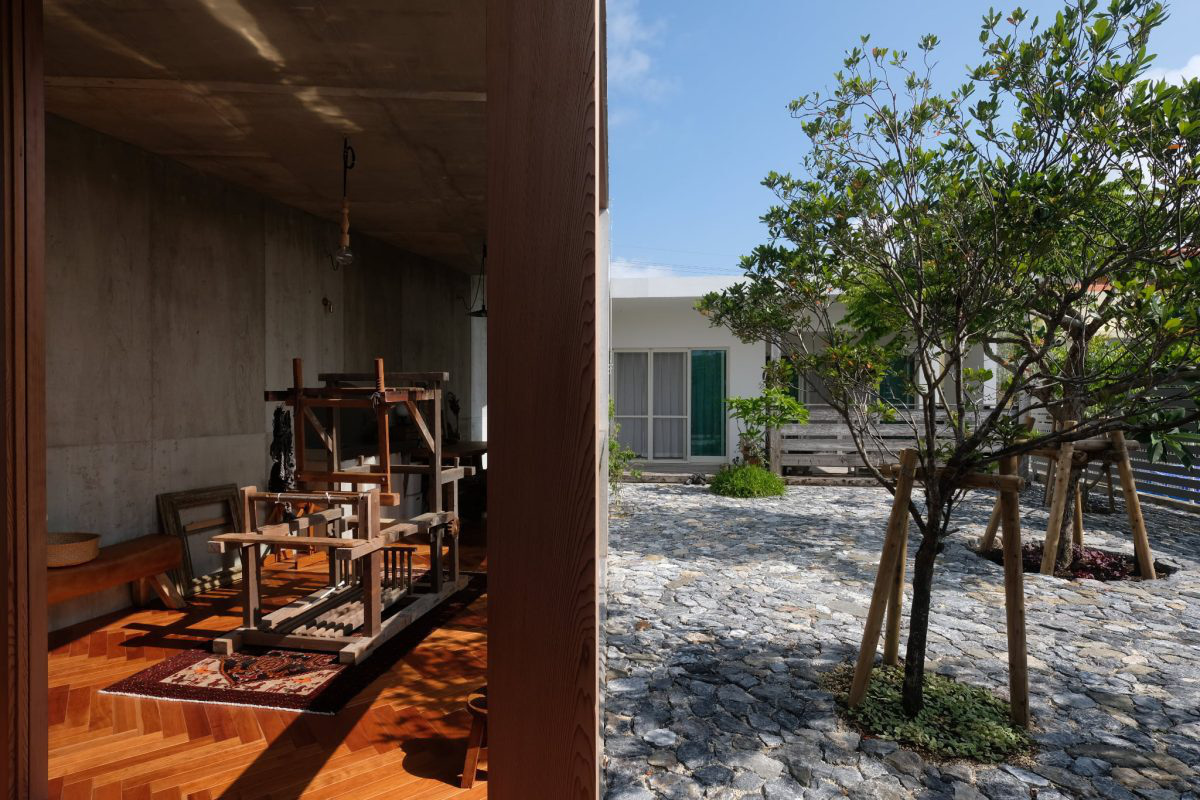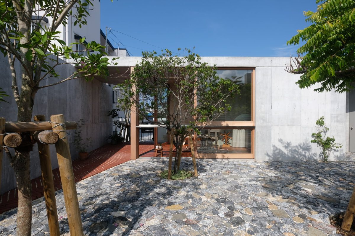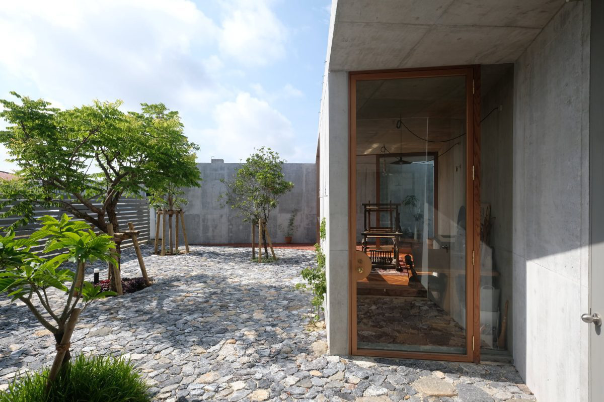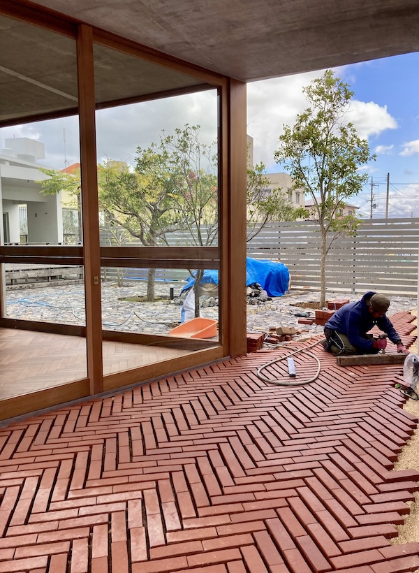 STUDIO COCHI ARCHITECTSの五十嵐さんのご紹介で、豊見城市のアトリエの外構と植栽を施工しました。「牛の歩みも千里」の言葉のように、少しずつ積み重ねて形になりました。石の表情や植栽の陰影が、建物に穏やかに馴染んでいます。